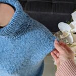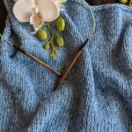 Переходимо до в’язання рукавів. По краю пройми на спиці №6,5 набираємо необхідну кількість петель, я набирала по 50 петель для кожного рукава. В’яжемо по колу лицьовою гладдю. Перед манжетом переходимо на спиці №5, в’яжемо 10 рядів резинкою 1х1, далі два ряда подвійною резинкою. Закриваємо петлі голкою.