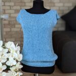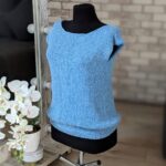 Товщина пряжі – мікс виходить  210м/100г. В такому поєднанні пряжі полотно має легкий меланж та делікатне мерехтіння люрексу. Для роботи нам потрібні будуть такі спиці №5, №6, №6,5.