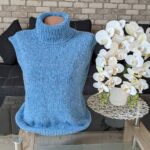 Продовжуємо виконувати резинку 1х1 на бажану висоту коміра. Далі два рядка подвійною резинкою. Закриваємо петлі голкою (відео знаходиться нижче).