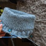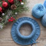 Починаємо з подвійного коміра. На спиці №3,5 набираємо 100 петель + 1 петля для з’єднання в коло (цього достатньо для обхвату моєї голови – 55 см).