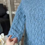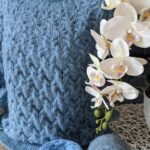 Пров’язавши 56 рядків згідно схеми, враховуючи мою щільність плетіння, товщину пряжі та розмір спиць, висота кокетки становить 21 см. Цього достатньо для мого розміру 48-50. Переходимо на в’язання азіатського ростка.