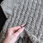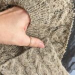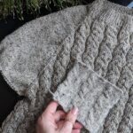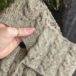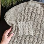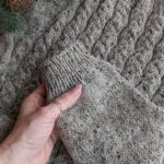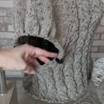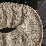 На додаткових канатиках є по 77 петель для кожного рукава. По краю підрізу та ростка набираємо додаткові петлі для бажаної ширини рукава. Я набрала 19 додаткових петель. На спицях 77 + 19 = 96 петель.