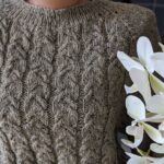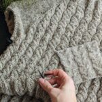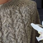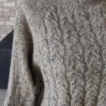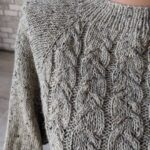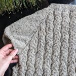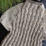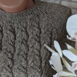 Починаємо в’язати кокетку по колу, виконуємо рельєфний візерунок на детелях спинка/перед, та лицьову гладь на рукавах. Збільшення петель біля ліній реглану виконуємо в кожному 2-му рядку для усіх деталей однаково. Нові петлі вводимо у візерунок згідно схеми.