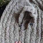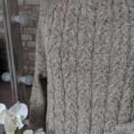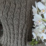 Схему рельєфного візерунка додала нижче в галерею. Рапорт візерунка 10 петель: 8 петель коса, 2 виворітні петлі. Непарні рядки в’яжемо згідно схеми, парні – за малюнком.