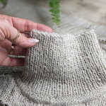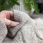 Починаємо розширення полотна рукавів із 6 петель плеча з обох сторін в кожному 2-му рядку. Перед петлями рукава додаємо нову петлю з останньої петлі спинки/переда, вводячи спицю на ряд нижче. Після петель рукава додаємо нову петлю з першої петлі спинки/переда, вводячи спицю на ряд нижче (дивись у відео нижче – частина 1).
