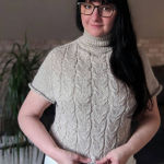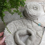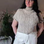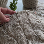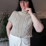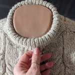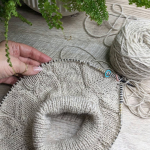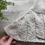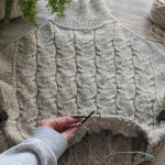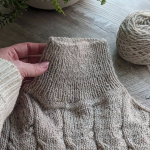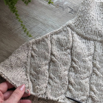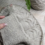 В процесі в’язання виконуємо примірки. Коли лінія погону досягла 10 см, кількість петель кокетки становить: спинка/перед – по 88 петель, плечі – по 6 петель.