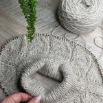 36 ряд: лицьову та виворітну пров’язуємо як дві разом лицьовою, і так по всьому круговому рядку. Кількість петель зменшиться вдвічі 160/2 = 80 петель.