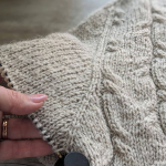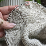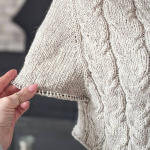 Виконуючи розширення полотна для рукавів одночасно ми формуємо висоту пройми. Через 15 см від початку пройми починаємо додавати петлі для скруглення пройми в кожному 2-му рядку (детально у відео нижче – частина 1).