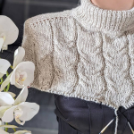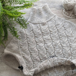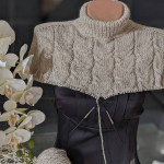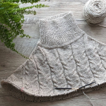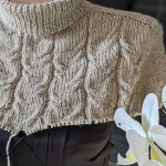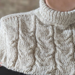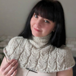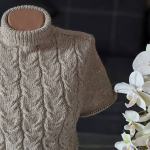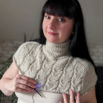 Виріб в’яжемо зверху донизу єдиним полотном. Починаємо від горловини. На спиці №3,5 набираємо 80 петель, в’яжемо комірець резинкою 1х1, з імітацією кетлювання.