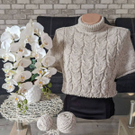 Модель виробу: реглан – погон зверху, прямого та вільного силуету, або у формі трапеції, з не високим комірцем. В’яжу на розмір 48-50.