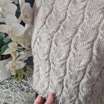 У виробі використано прості рельєфні коси. Візерунок не перевантажує форму, а навпаки — підкреслює вертикаль і додає виробу пластичності та м’якості.