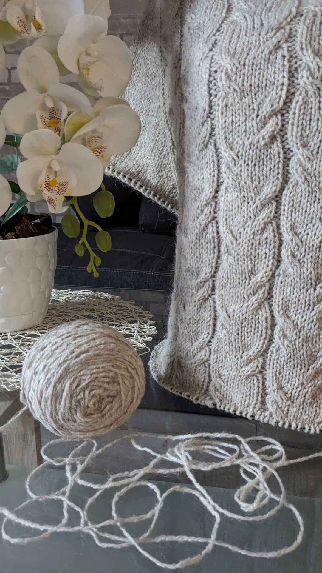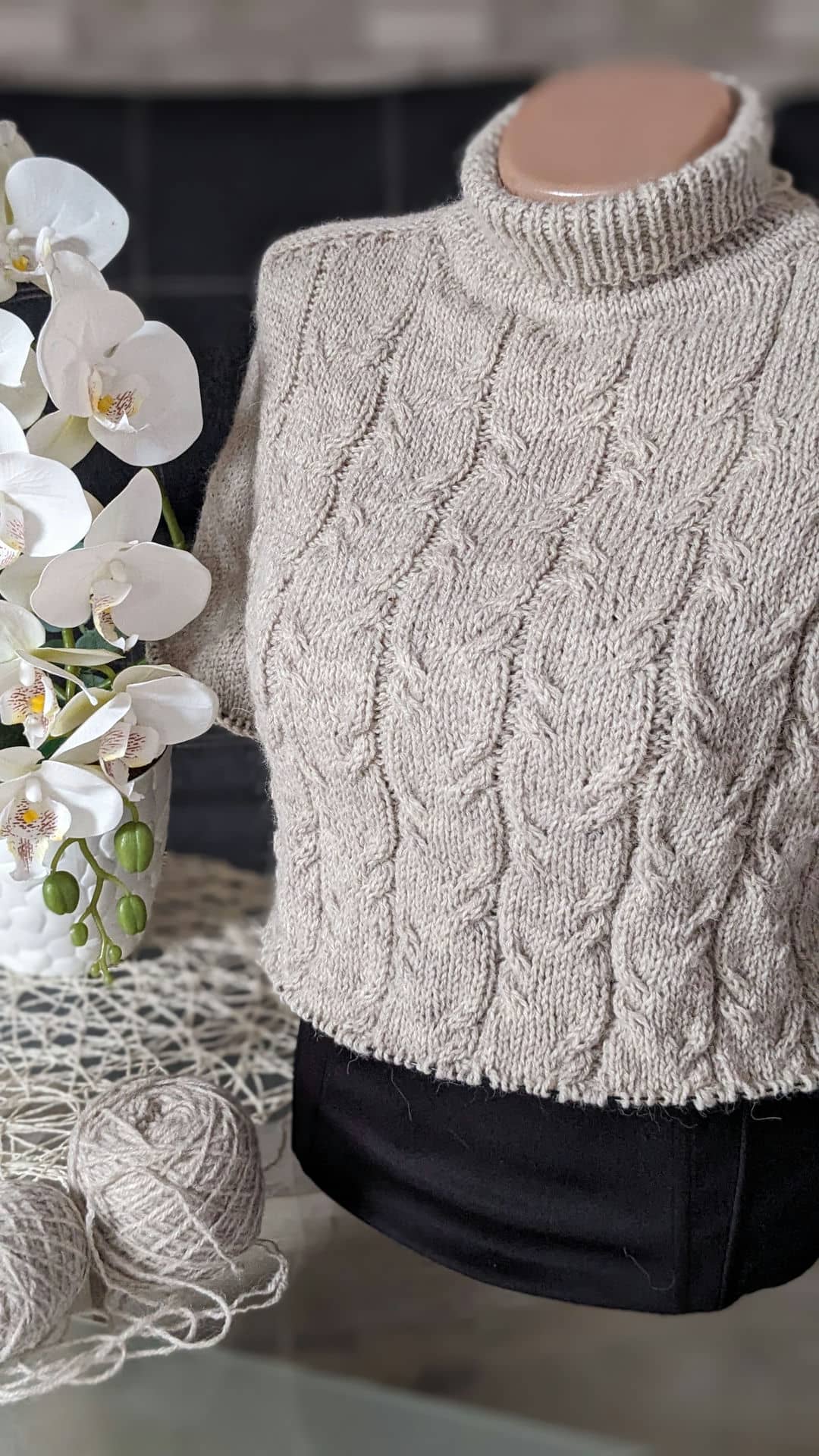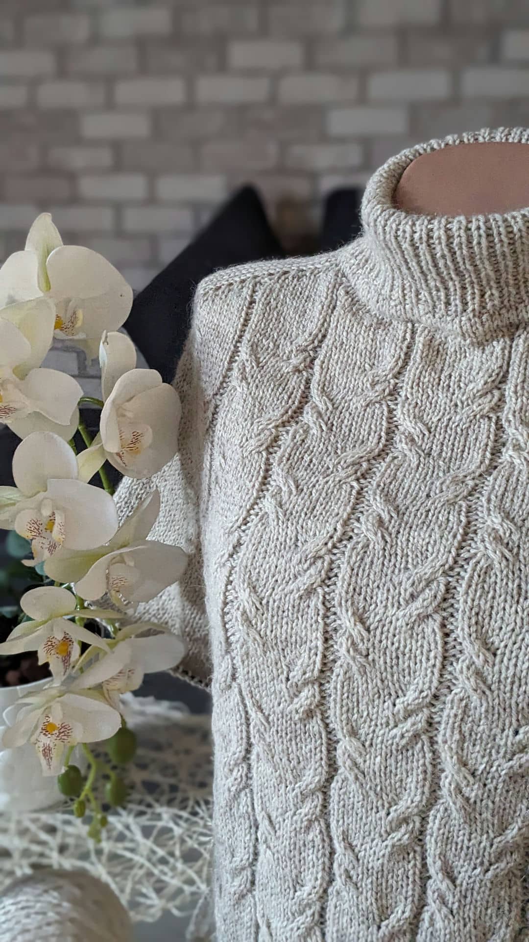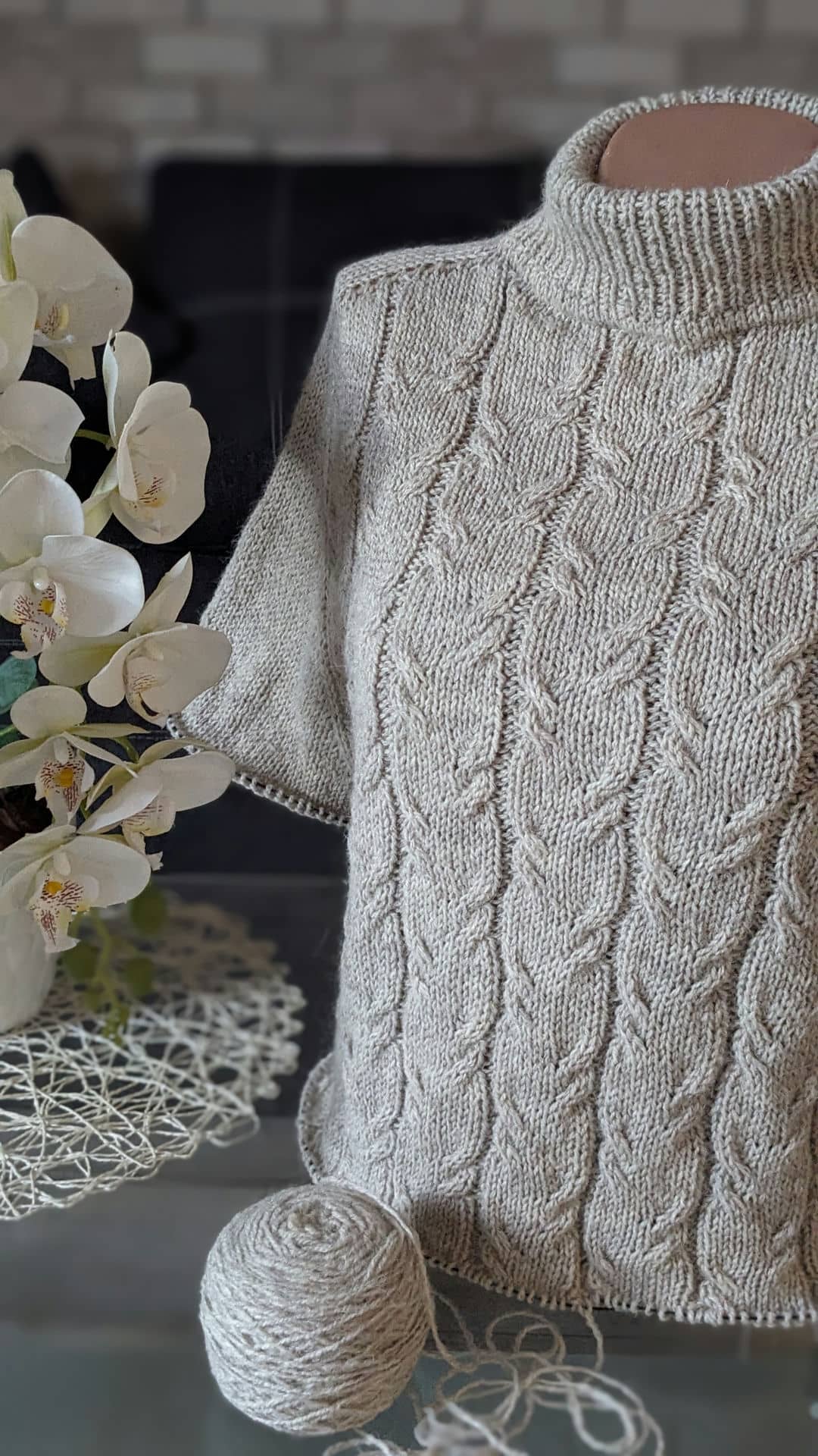 У виробі використано прості рельєфні коси. Візерунок не перевантажує форму, а навпаки — підкреслює вертикаль і додає виробу пластичності та м’якості.