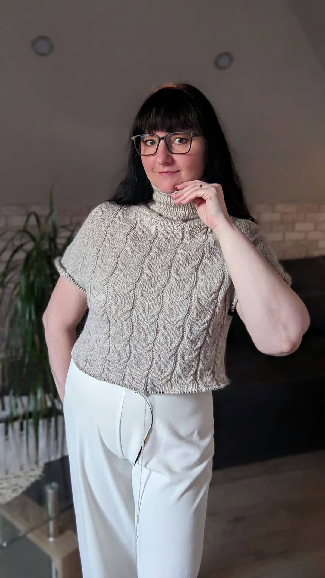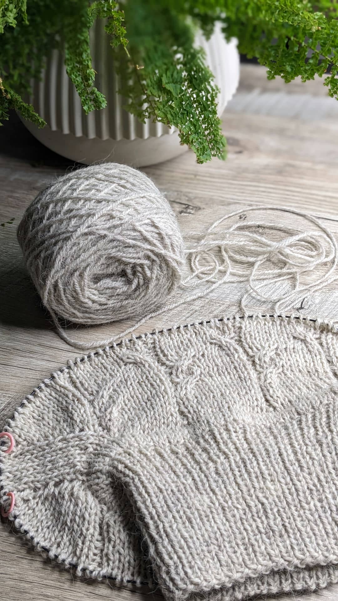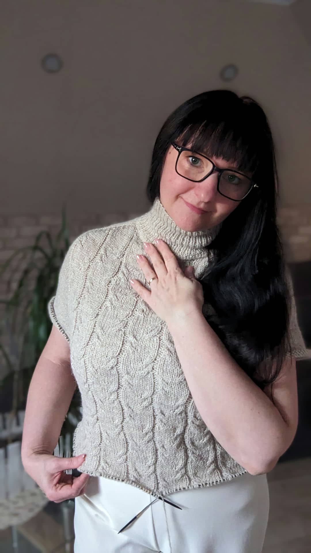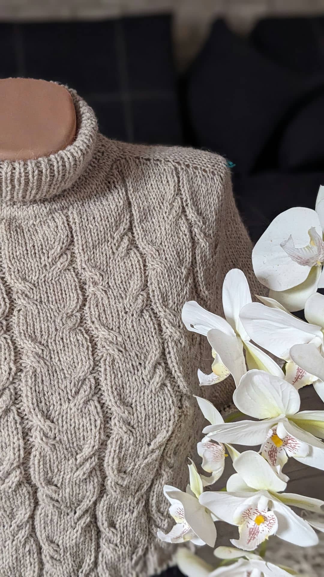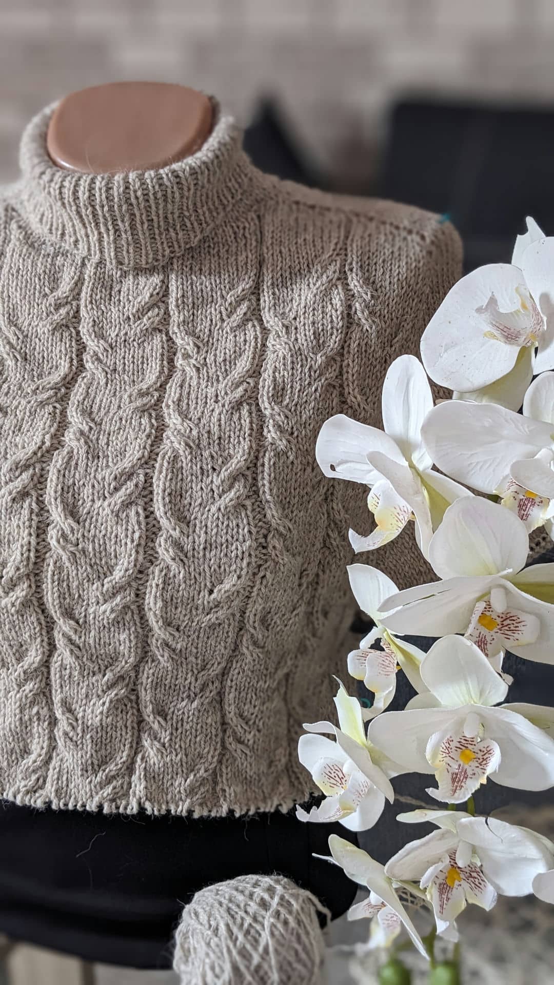 У виробі використано прості рельєфні коси. Візерунок не перевантажує форму, а навпаки — підкреслює вертикаль і додає виробу пластичності та м’якості.