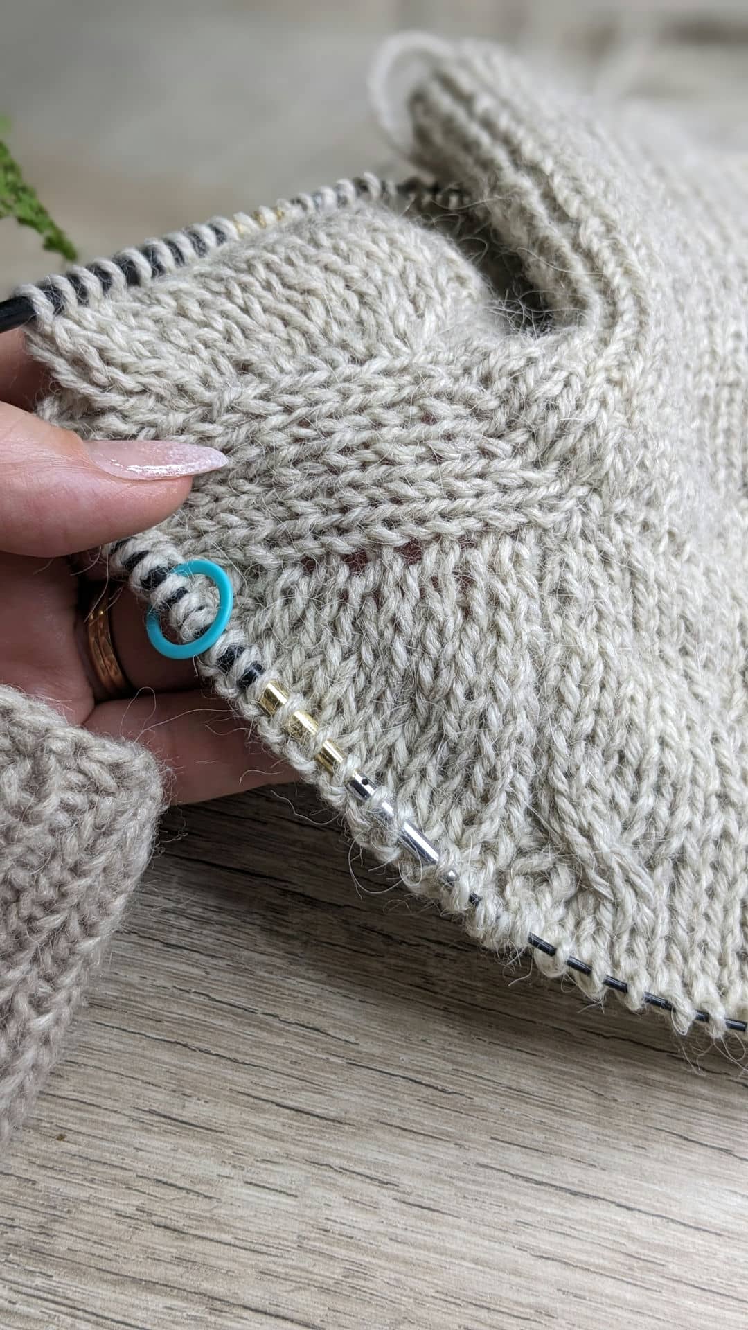 Переходимо на спиці №4. Після комірця виконуємо розподіл петель на окремі частини та відмічаємо маркерами: