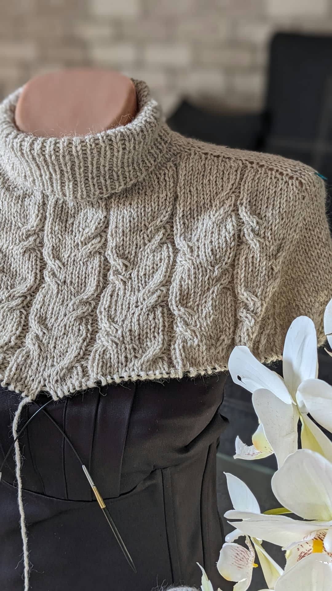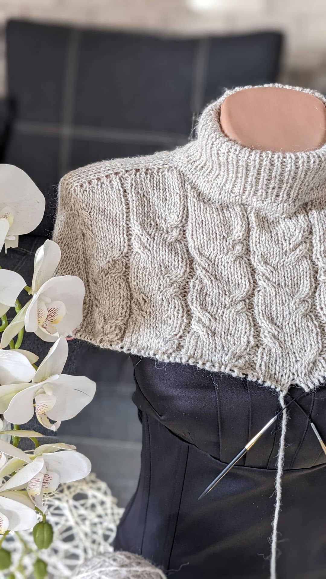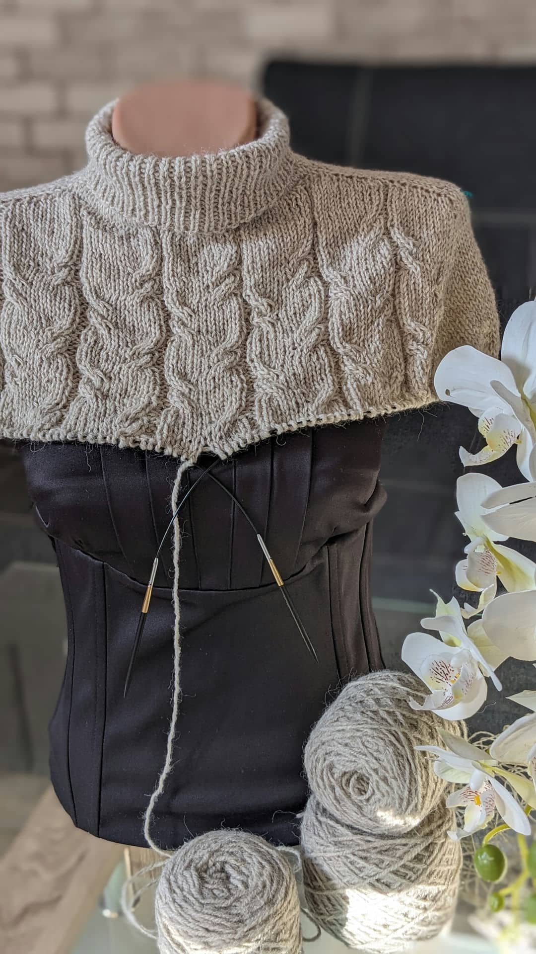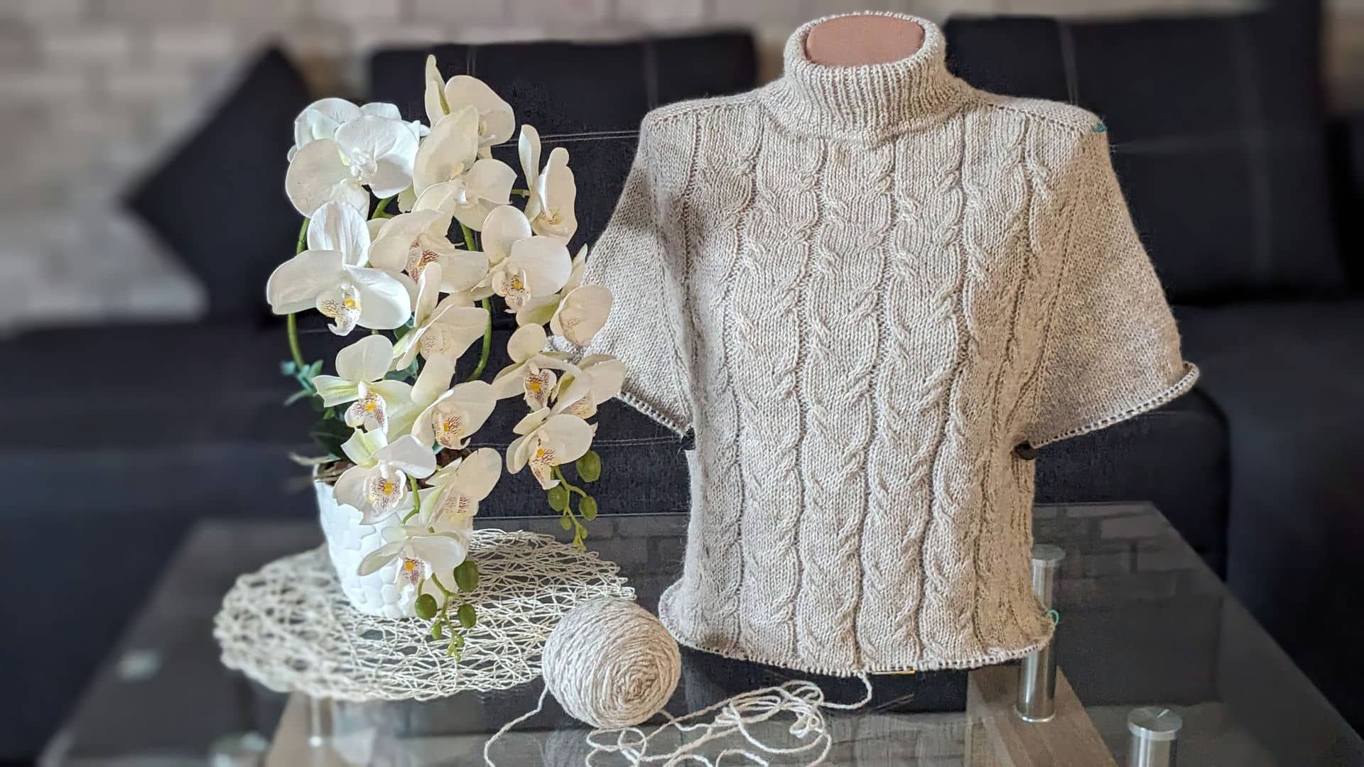 В процесі в’язання виконуємо примірки. Коли лінія погону досягла 10 см, кількість петель кокетки становить: спинка/перед – по 88 петель, плечі – по 6 петель.