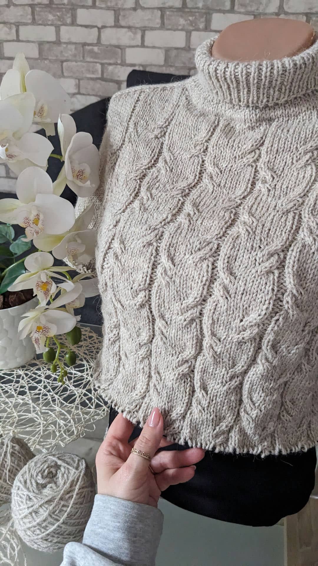 Для светра–сукні «Warm Embrace / Теплі обійми» обрала м’яку та приємну на дотик пряжу, склад якої: альпака / вовна / акрил з метражем 250м/100г.