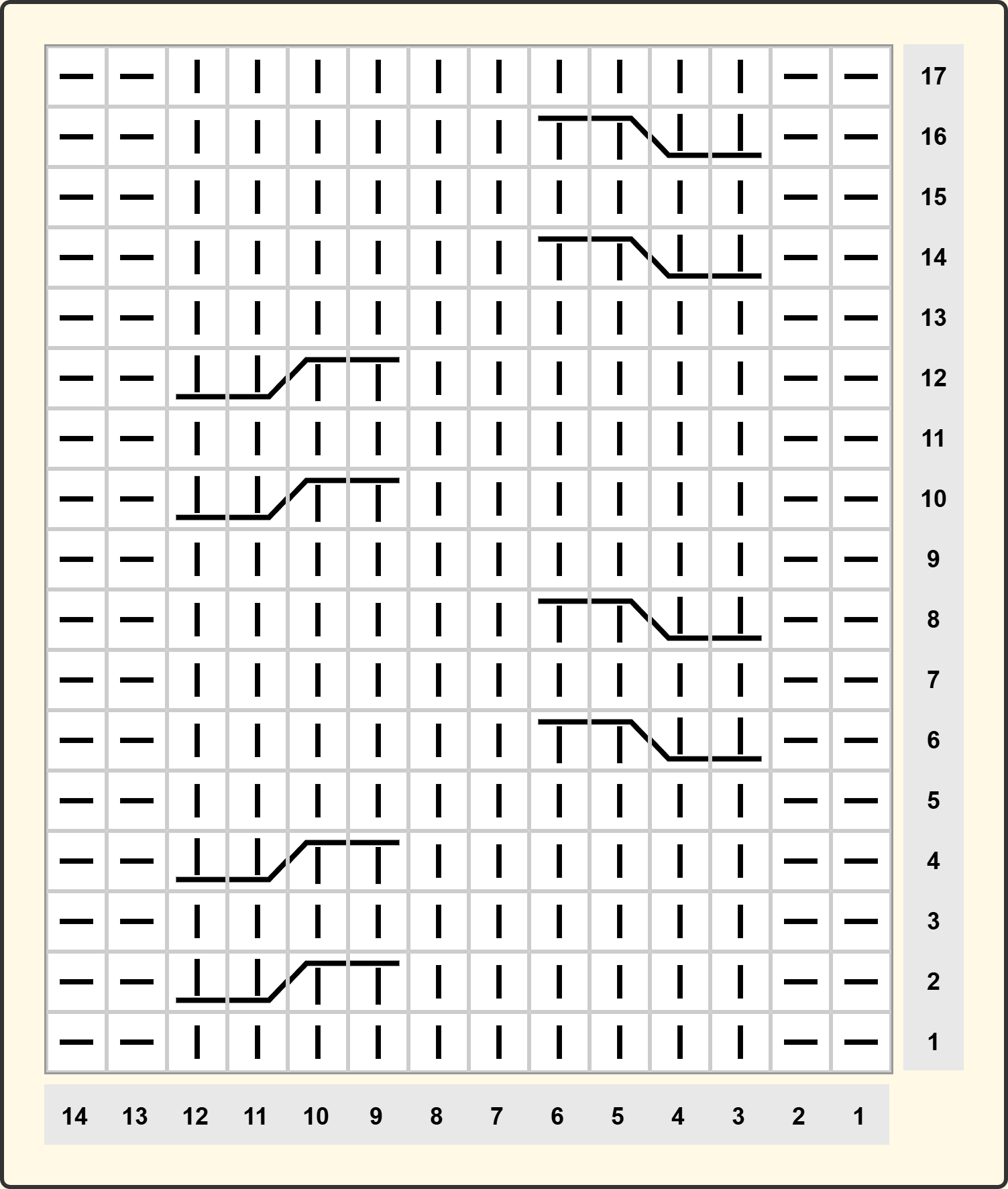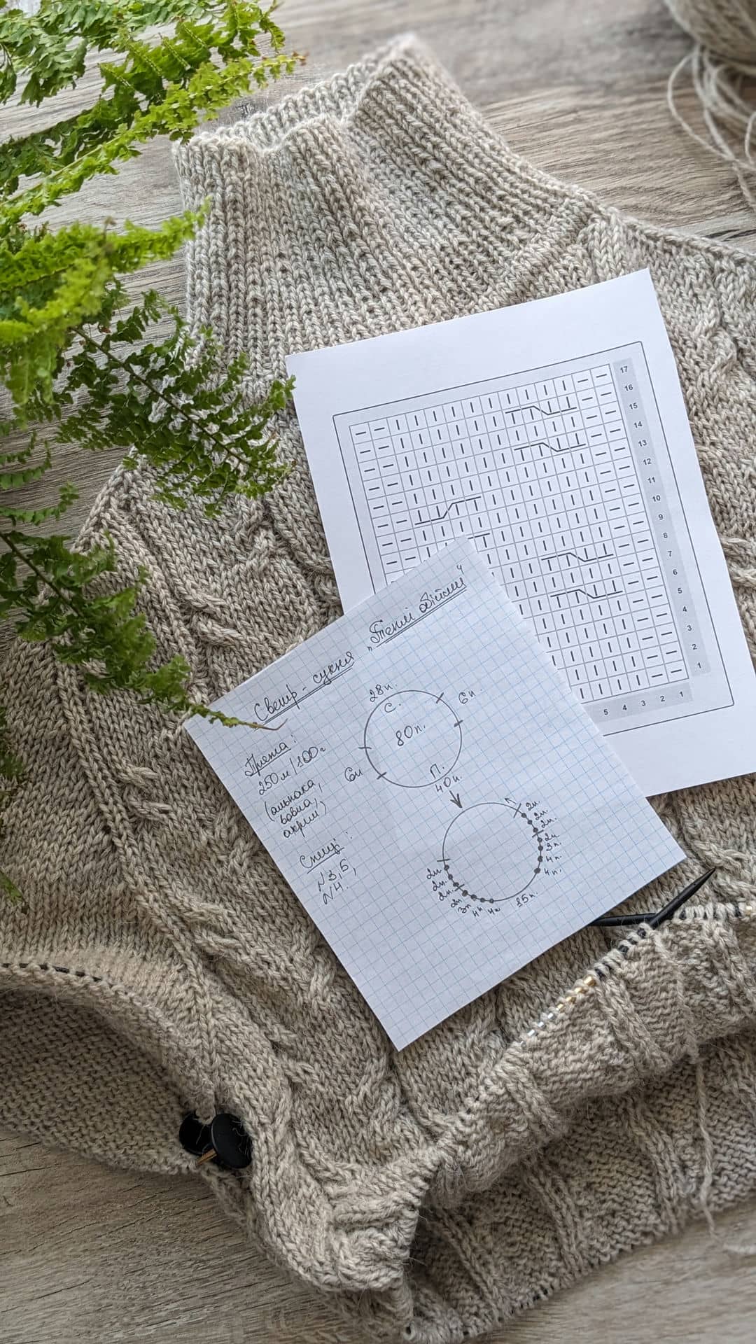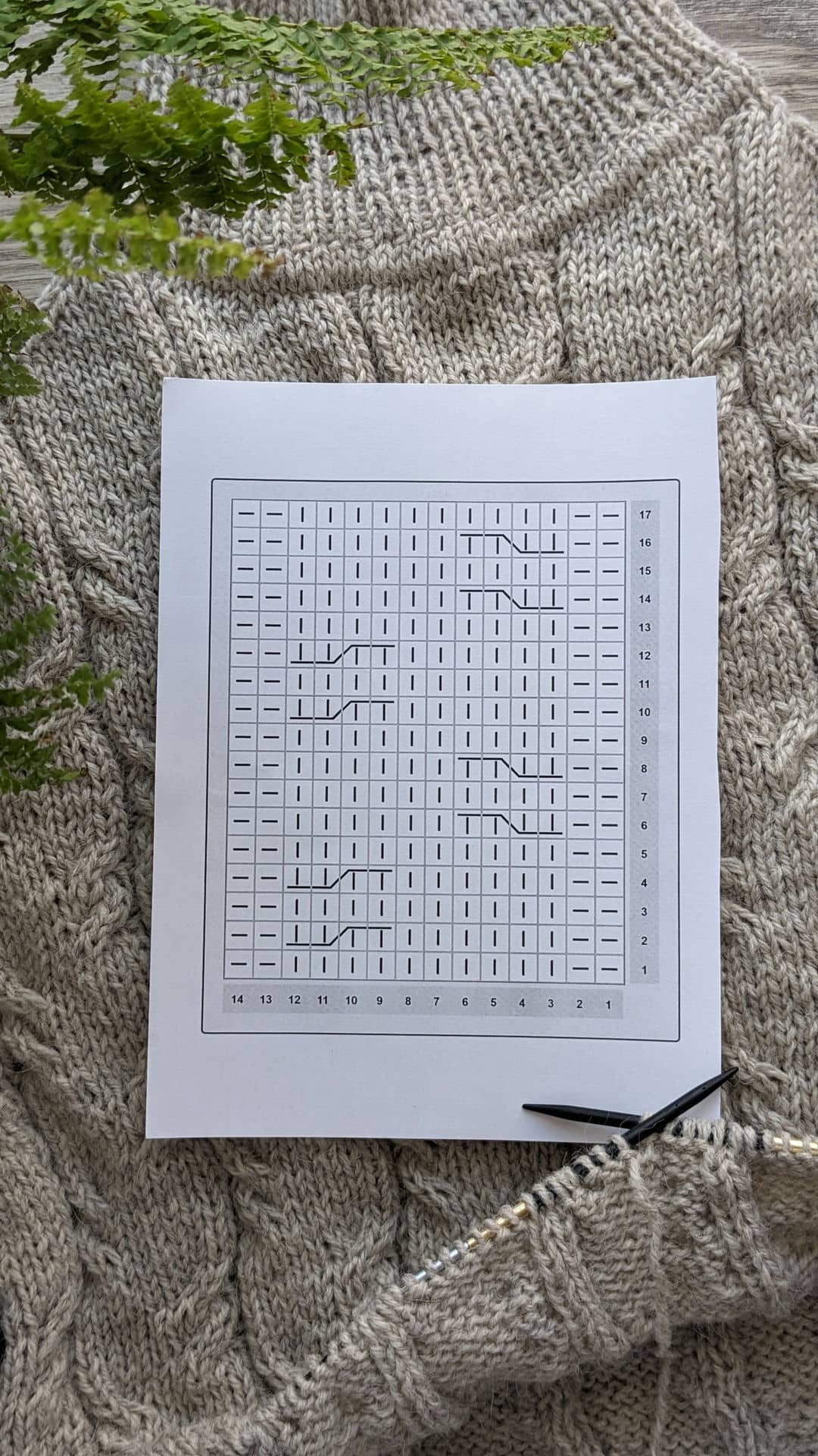 Схему візерунку додала нижче, рапорт візерунка 12 петель + 2 петлі для симетрії, на схемі зазначені непарні ряди, парні – в’яжемо за малюнком.