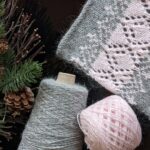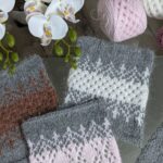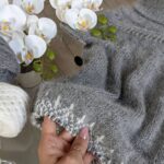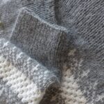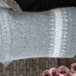 Через 10 рядов ажурного узора, меняем спицы на 4,5 и вяжем снова жаккардовый узор, в конце ряда прибавляем одну петлю из протяжки.