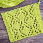Далее снова меняем спицы на 4, вяжем ажурный узор “Звёздочки”. Раппорт этого узора 3 петли, поэтому в первом ряду убавляем одну петлю для симметрии.