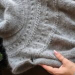 С 56-го ряда переходим на вязание круговыми рядами. Соединяем детали переда и спинки, формируем подрезы. На каждый подрез я набирала по 10 петель.