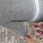 Вяжем лицевой гладью до необходимой длины, у меня 70 рядов. Далее переходим на спицы №4,5 и вяжем жаккардовый узор с ажуром. Далее переходим на спицы №4, вяжем лицевую гладь, затем резинку 1х1.