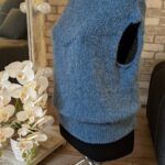 Деталь спинки. Вяжем резинкой 1х1 еще 12 рядов, затем, в следующем ряду переходим на лицевую гладь, выполняем убавления через каждые 5 петель (провязываем 2 петли 2 вместе лицевой). Всего убавила 13 петель, осталось 84 петли спинки.