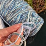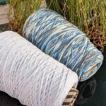 Для роботи обрала італійську бобінну пряжу Rope від E. Miroglio двох відтінків: ніжний блакитний та меланжевий.