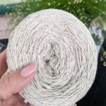 Для цієї роботи я обрала пряжу з літнім складом (60% бавовна, 40% льон), 500м/100г. Гачок №2.