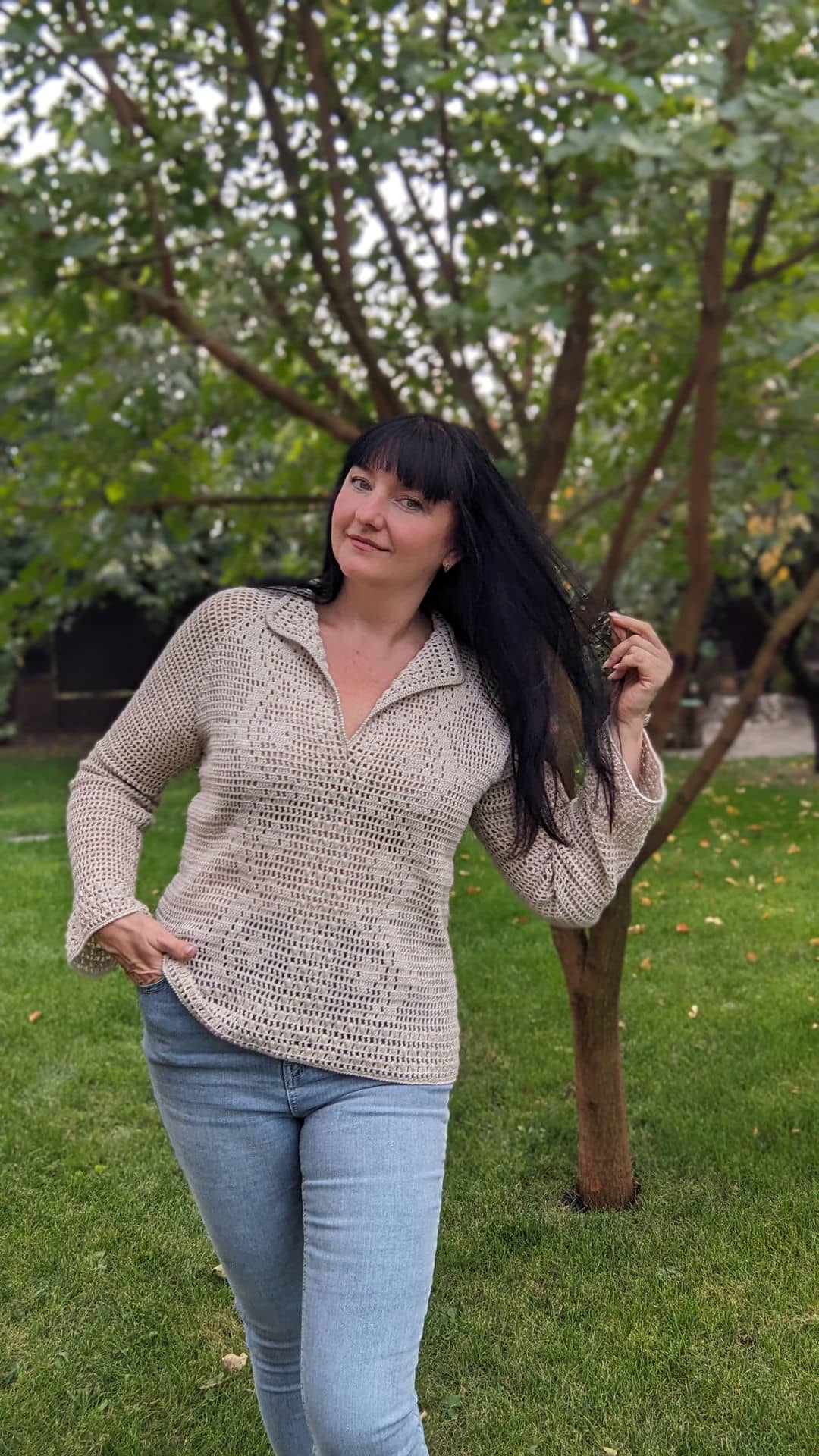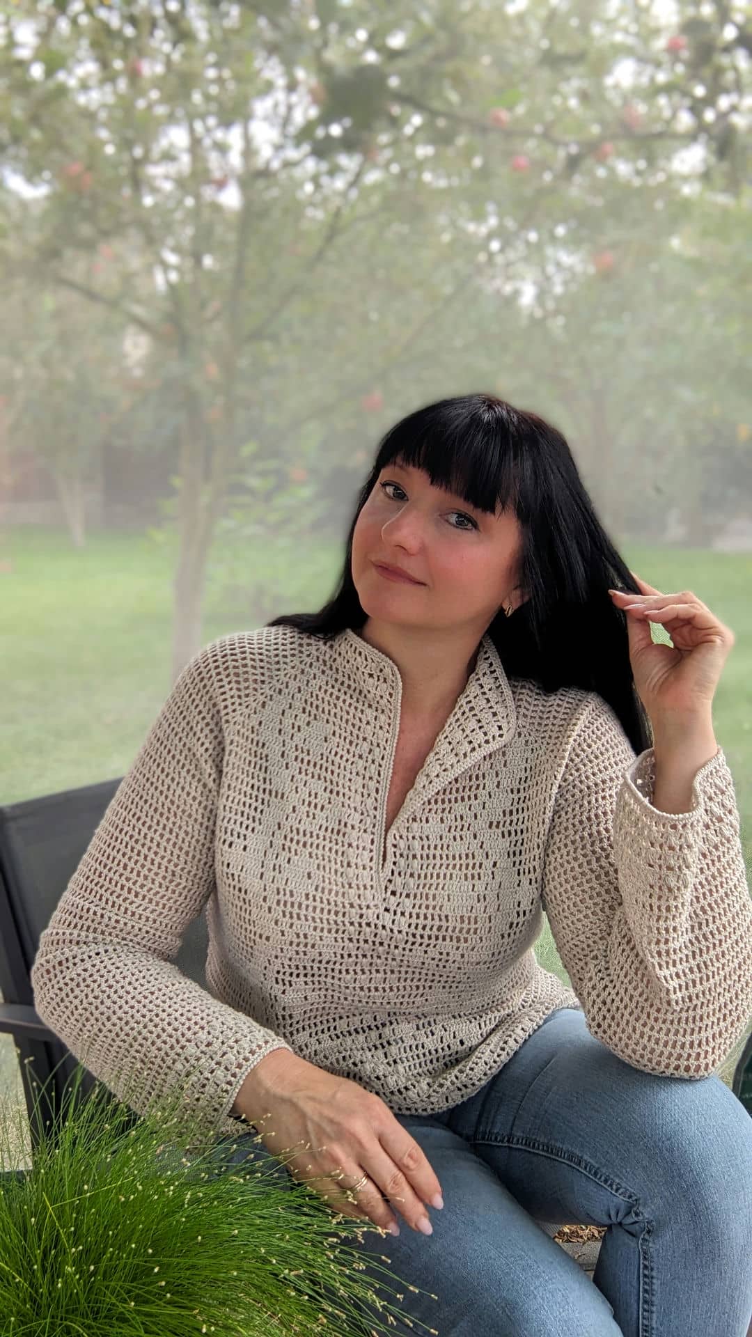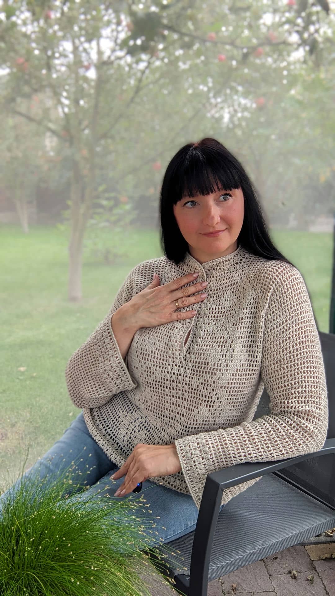 На рукавах візерунку не виконую, лише філейна сітка. По низу така ж мережка як і на основному полотні.