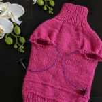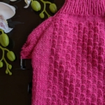 Для необхідної довжини кокетки відв’язала 24 рядка. На цьому етапі кількість петель становить: спинка – 46 п, животик – 21 п, рукава – по 23 п, ЛР – по 1 п.