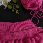 Саме ці рядки виворітних петель – це намітка для вив’язування рюші. Їх буде дві.