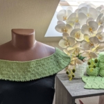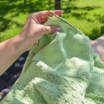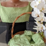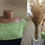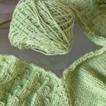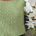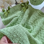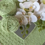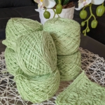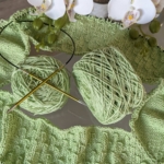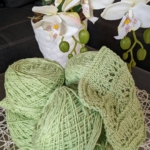Для цього проекту я беру 100%  бобінну бавовну світло-зеленого кольору, 300м/100г, спиці №3,5. Бавовна НЕ завжди ідеально виглядає в полотні різних візерунуів. Тому зразочків я в’яжу чимало, і зрештою, обираю найкращий варіант.