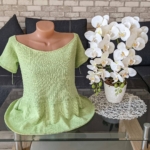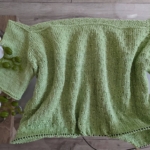Перед та спинку в’яжемо лицьовою гладдю із знятими накидами через дві лицьові петлі (відео – частина 1), рукава – звичайна лицьова гладь.