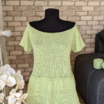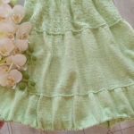 Довжина другої оборки 23 см. Ширина по нижньому краю біля 110 см. Нижній край сукні закінчила як на рукавах. Вага виробу на цьому етапі 620 г.