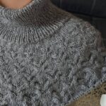 Пров’язавши 56 рядків згідно схеми, враховуючи мою щільність плетіння, товщину пряжі та розмір спиць, висота кокетки становить 21 см. Цього достатньо для мого розміру 48-50. Переходимо на в’язання азіатського ростка.