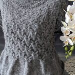 Кругла кокетка може стати окрасою будь – якого плечового виробу. Отже, запрошую зв’язати чарівну та практичну сукню спицями з чудовим рельєфним візерунком “Соти”.