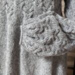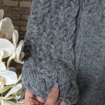 Далі переходимо на в’язання рукавів. В роботі спиці №4. По краю підрізів та ростка для кожного рукава набираємо 18 додаткових петель. На спицях для кожного рукава маємо по 72 + 18 = 90 петель. Починаємо в’язати рельєфним візерунком по колу. Через 15 см від пройми переходжу на спиці №4,5. Продовжую в’язати рукава до необхідної довжини.