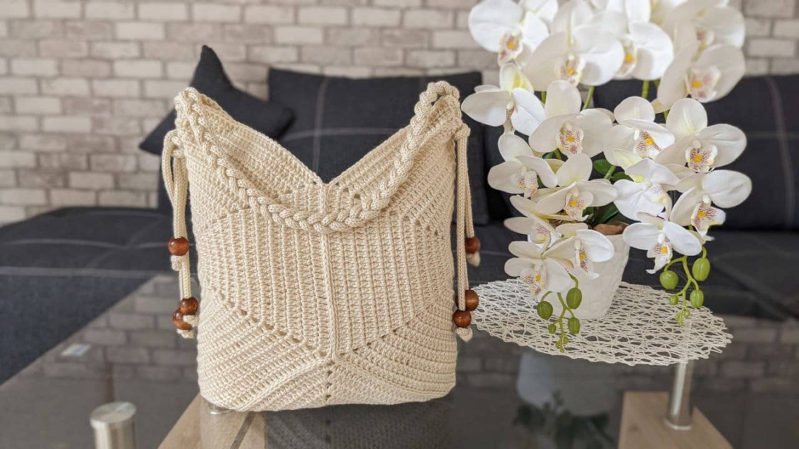 Далі переходимо до ручки. Її можна придбати в магазинах фурнітури для творчості. Або, зв’язати власноруч у вигляді смужки, шнура, плетеної коси, шнур макраме тощо.