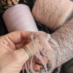 Зразок в’язала з міксу трьох видів пряжі пудрових відтінків: